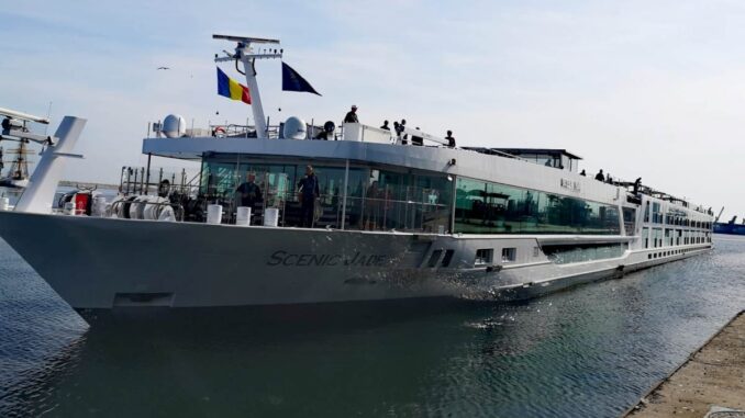 Nava fluvială Scenic Jade, cu pavilion Malta, a acostat astăzi la terminalul de pasageri al Portului Constanța, cu 115 turiști din Statele Unite ale Americii și Canada.