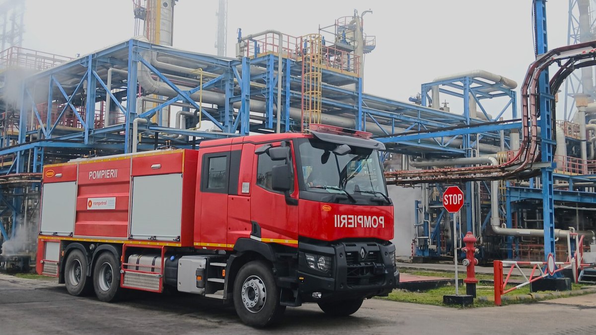 Mașină de pompieri la rafinăria Petromidia. FOTO Rompetrol